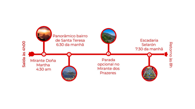 Oferecemos uma experiência imersiva, começando no Mirante Dona Marta com o nascer do sol. A vista panorâmica do bairro Santa Teresa proporciona uma imersão em aspectos históricos e culturais, incluindo parada opcional no Mirante dos Prazeres para fotos memoráveis. A viagem leva então os visitantes à famosa Escadaria Selarón, terceiro ponto turístico mais visitado no Rio de Janeiro, tombado como Patrimônio Cultural em 2015. Esta obra artística única é um convite para explorar o rico patrimônio cultural da cidade.